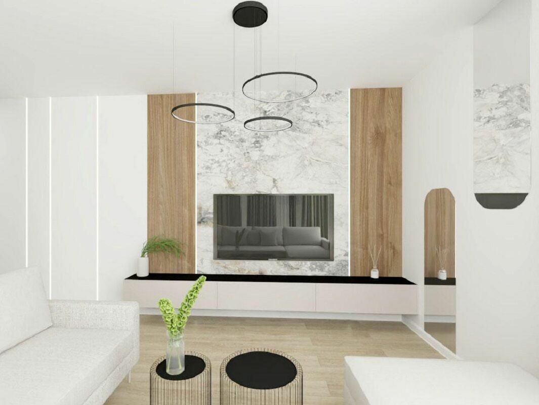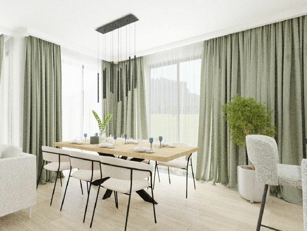 Zdjęcia przedstawiają projekt budynku oraz poglądowe aranżacje wnętrz.