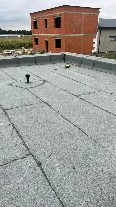 *dach ocieplony styropianem 59 cm + 2 warstwy papy Bauder